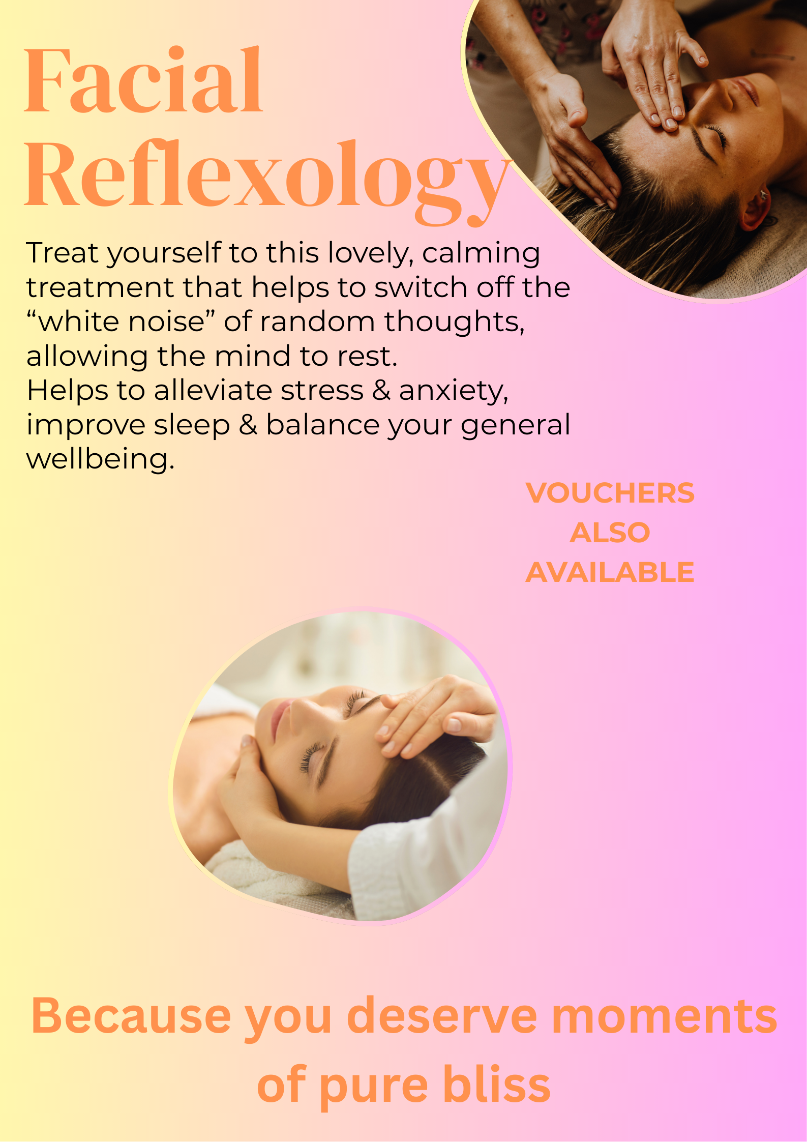 Facial reflexology offers a unique path to calm and relaxation. By applying gentle pressure & massage type techniques to areas on the face, neck & head it promotes overall well-being and tranquillity.