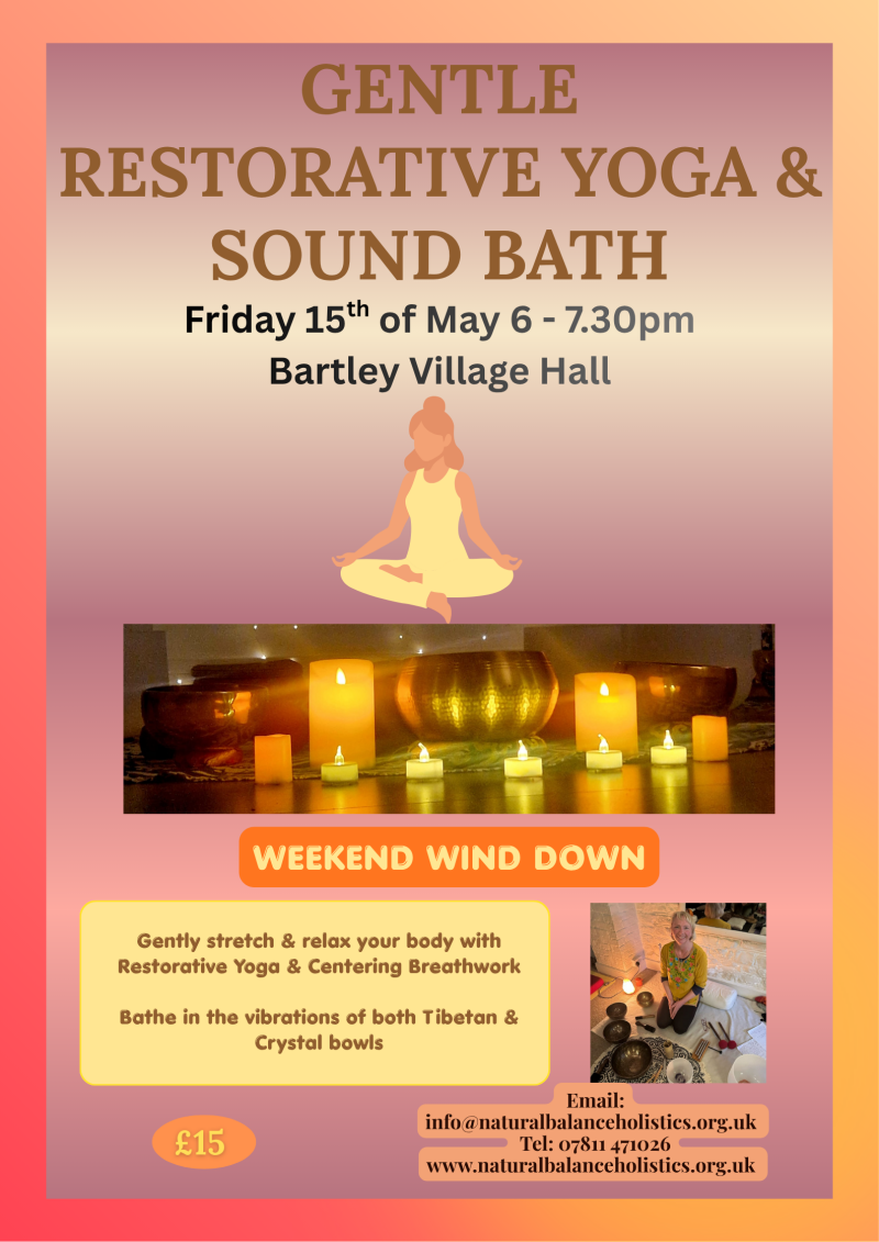 at BARTLEY VILLAGE HALL - 5.45 - 6.45pm
